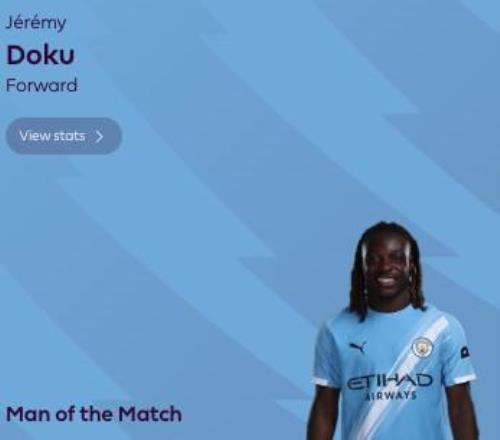 英超第11轮,曼城主场3-0大胜利物浦,此役打入一球的曼城边锋多库当选英超官方全场最佳球员。